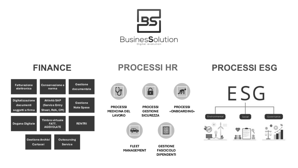 BUSINESSOLUTION è al fianco delle aziende in questo percorso, offrendo soluzioni personalizzate nei verticali di Finance, HR e ESG, per ottimizzare la gestione dei processi aziendali e favorire una transizione digitale fluida, sicura e sostenibile.
